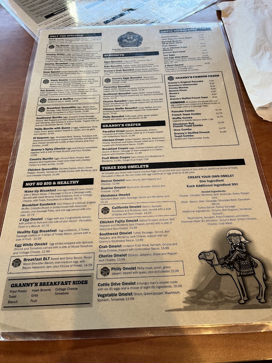 Welcome to Granny's Kitchen - Memorial Rd., where comfort food meets generous portions. Nestled at 2121 W Memorial Rd, this charming eatery is renowned for its hearty breakfasts and welcoming atmosphere. Guests rave about the Oklahoma Omelette, packed with every breakfast meat imaginable, and the French Toast Combo, featuring big slices of yellow Texas toast. The freshly squeezed orange juice is a delightful companion, elevating your morning experience.